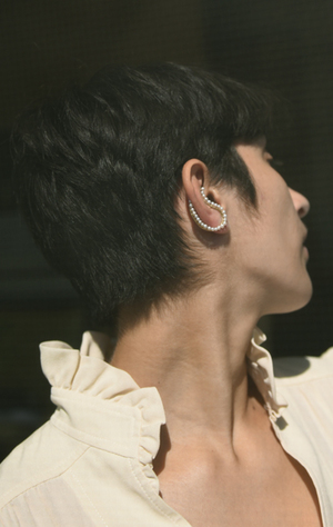 A sculptural, curved earring composed of freshwater pearls and gold vermeil. Gold vermeil post and backing. Sold individually. Made in Spain. Composition: Freshwater Pearls and Gold Vermeil Please note, each earring is sold individually. Questions? Contact us at info@anaise.com or call 408.807.9379