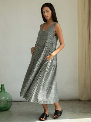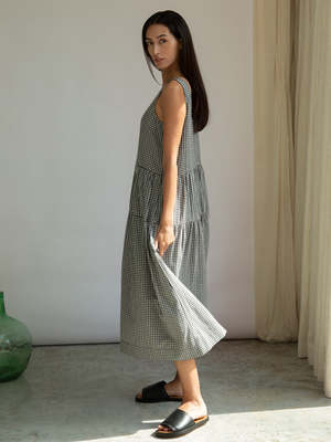 The Kyra-Cay dress is a sleeveless maxi dress with paneled accents, a scoop back, and side pockets. Crafted from crisp poplin that has been brushed inside and out for a clean yet soft finish. - Made from 100% GOTS certified organic cotton - Made ethically in Portugal - Machine washable at 30C - Ishika is 5'7" and wears a size Small.