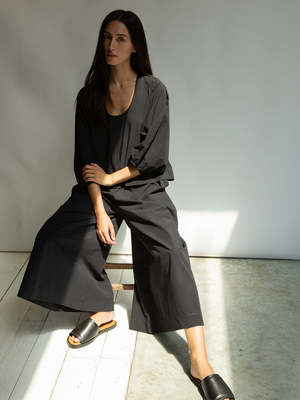 The Mazu Trousers are a super wide fit culotte style with side pockets and an elasticated waistband. Crafted from 100% GOTS certified organic cotton poplin for a crisp, cool feel. Made ethically in Portugal. Machine washable at 30C. Ishika is 5'7" and wears a size Small.