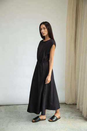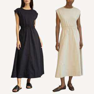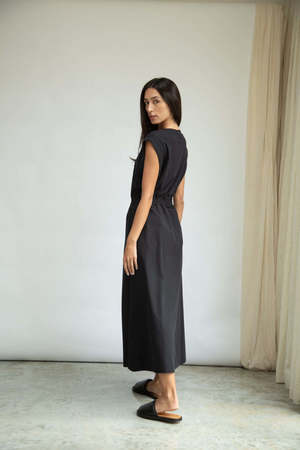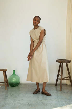 The Tanya is a flattering sleeveless day dress crafted from 100% organic cotton poplin and the softest organic cotton jersey. It features side pockets, a round neck, and stitching detail on the armholes. A comfortable elasticated waistband draws together the jersey top and crisp poplin skirt, creating a relaxed, cool dress for all occasions. THINGS TO KNOW: - Made from 100% GOTS certified organic cotton - Made ethically in Portugal - Machine washable at 30C SIZE & FIT: - Lydia is 5'10" and wears size Small - This style is Classic Fit FABRIC: 100% Organic Cotton Manufacturing and sourcing: - Fabric supplier: Risatel, Portugal (GOTS cotton supplier) - Poplin: M. Sousa Rodrigues, Portugal - Jersey: Etevimol, Portugal - Sewn in Portugal at Anglotex - Finished in Portugal at Anglotex