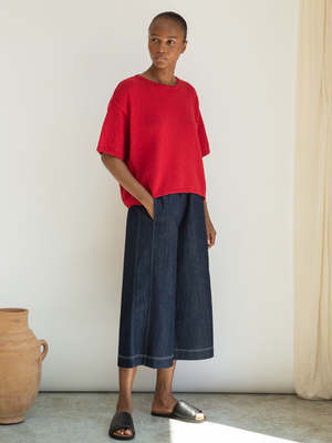 The Alessia Short Sleeve Knit from Beaumont Organic is an organic cotton and linen blend knitted jumper featuring a ribbed hem and cuffs. Perfect for wearing on its own or layering over dresses and shirts for extra warmth on spring evenings. - Made from an organic cotton and linen blend - 70% Organic Cotton, 30% Certified Linen - Boxy style - Made ethically in Portugal - Hand wash - Model is 5'10" and is wearing a size small