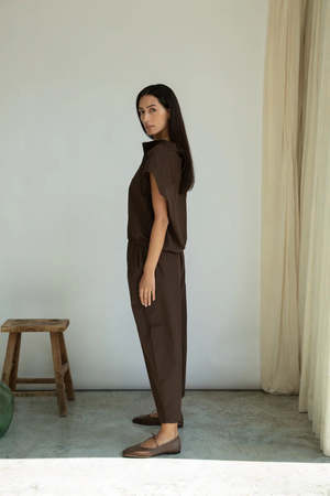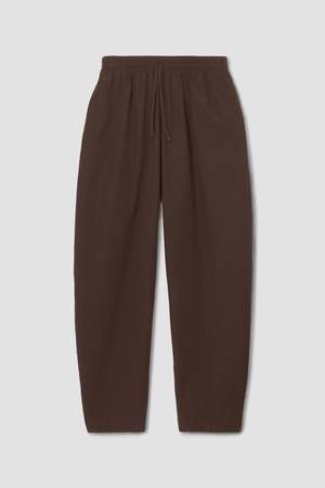 The Cedar Trousers are a barrel leg style with a relaxed rise, a comfortable drawstring elasticated waistband, and side pockets. Crafted from crisp poplin, they offer a clean yet soft finish. Lightweight enough to wear all summer long. Ethically made in Portugal. 100% Organic Cotton Measurements: XS: Waist 22.75" - 25.75" | Rise 11" | Inseam 24.5" S: Waist 24.75" - 27.75" | Rise 11" | Inseam 24.5" M: Waist 26.75" - 29.75" | Rise 11" | Inseam 24.5" L: Waist 29.75" - 31.75" | Rise 11" | Inseam 24.5"