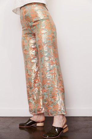 Wide leg, high waisted pants, fully lined in silk. These are ready for the party season. They are a limited run with only 4 made. Fabric: Silk/lurex outer. Silk lining Care: Dry clean only