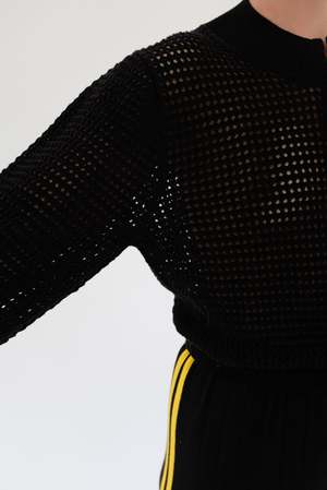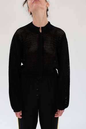 100% Peruvian cotton medium weight, open waffle stitch cardigan. Washable, not overly delicate, great cardigan for travel and everyday wear. Cropped length, long sleeves, short collar, snaps down the front. Dress up with slacks or a skirt, or wear with your favorite jeans, or tube top. Staff favorite. 100% Peruvian Cotton. Made fairly by hand in Peru. Model is wearing OS- Petite. Total length from shoulder to hem of OS- Petite 18" Total length from shoulder to hem of OS 20"