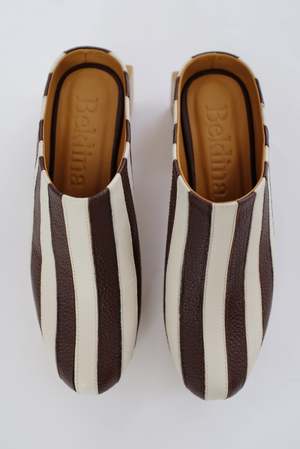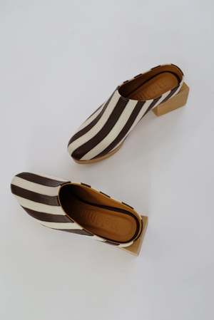 Hand-carved wooden platform split heel, comfy mule slide upper made from 100% Italian leather uppers and leather lined. Features a 2" back heel and 1" front platform. The heel is split into two parts, allowing the shoe's middle leather layer base to bend, making it very wearable and ultra-comfortable. A shop favorite, feels like you're wearing slippers! Pre-sale, shipping by end of March. Running true to size. Made fairly in Peru.