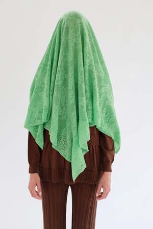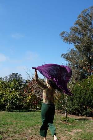 Luxurious soft merino lace knit scarf with wide ruffle edging. Warm and soft, yet light as air, and not overly delicate. Wear as a scarf, shawl, throw blanket, or comfort object. 45" x 45" Lovingly made in Peru.