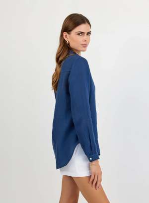 You cant go wrong with this classic pocket button-down shirt from Bella Dahl. This style features long sleeves, a button front, a collar, and a patch pocket on the chest. Wear it casually or dressed up; it will quickly become a wardrobe staple. Details: - Straight fit - V-neckline - Button front closure - Patch chest pocket - Color: Midnight Surf - True to size - Model is 5'10" and wears size XS - 100% linen - Machine wash cold