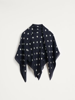 Reach for Silea when your look needs a little something extra. Wrap around your neck, tie to your bag, or use as a hair accessory for a feminine touch. Features a playful mint colored polka dot pattern on navy. Crafted from 100% silk, it's lightweight and extra versatile for multi-use and year-round wear. Holidays are coming up! Makes the perfect gift for you or your favorite person. 41 x 41 Made in India Pair up with the yellow Lily cardigan for extra feminine flair.