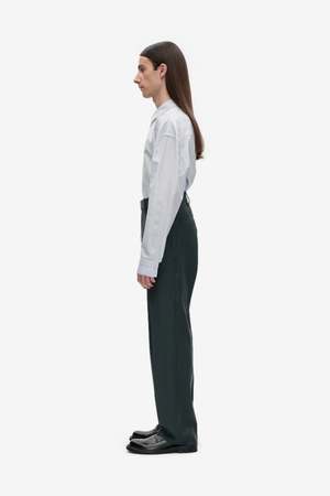 Produced in a fine virgin wool. The Berner Khl Dress Pant has a straight leg, press fold and features a zip fly, two side pockets, two welt back pockets, and hook and bar closure. Made with a blind hem stitch. The color is grey with a slight green hue. Style code: 2-39T31-081. Composition: fine virgin wool. Color: 081 Grey.