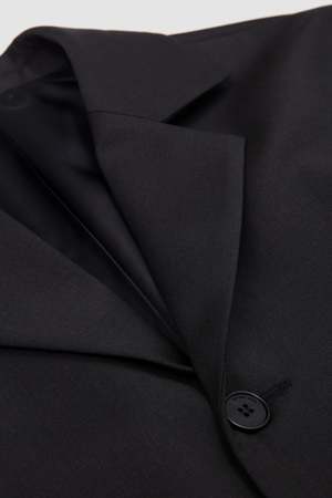 The Dinner Jacket by Berner Khl is produced in a pure wool fabric and features a straight fit with a slightly higher break point than usual. It closes with three real horn buttons. The jacket is fully lined and unconstructed, with no shoulder pads.