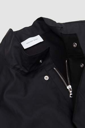 Produced in an Italian deadstock coated linen fabric. Our Field Jacket has a regular fit and features a RIRI metal zipper and press button closure at the center front. It is unlined and made with fraying seams at the armhole and front.