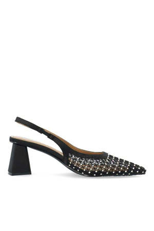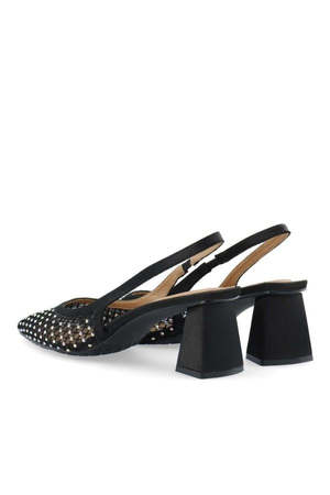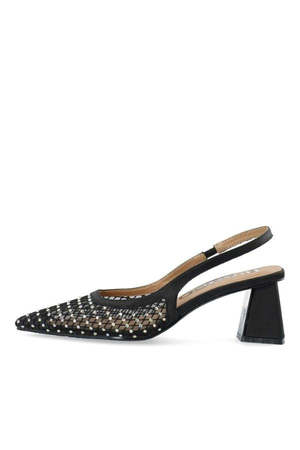 Dazzle in these Biamaralyn Black Mesh Slingback Heels. Rhinestone details add a chic touch to these cool and comfortable block heels. The perfect mix of style and comfort, these shoes are a must-have for any fashionable wardrobe. Also available in Off White. DETAILS: - Pointed toe - Rhinestone mesh design - Slingback strap - Block heel - Heel height: 6 cm - Type: Heels