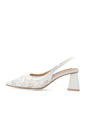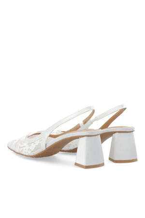 DETAILS: - Pointed toe - Embroidered vamp - Slingback strap - Block heel - Heel height: 6.2 cm MATERIALS: - Inner: 80% Polyester, 20% Polyurethane - Upper: 100% Polyester - Sole: 100% Thermoplastic Rubber - Insole: 100% Polyurethane SIZE + FIT: - For more sizing details, please refer to the measurements in the size guide below. All Loversland Bridal brand is made-to-order and FINAL SALE.
