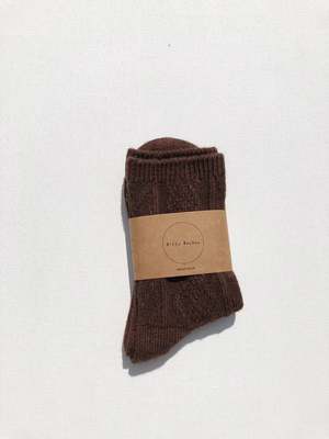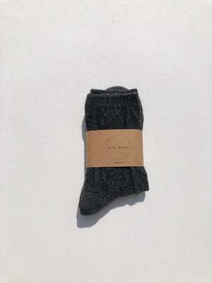 Wool socks with a twisted pattern. Wool does not need to be washed after every wear; simply air out between uses. When washing, use a wool-specific detergent at 30C on a gentle cycle. Lay flat to dry to maintain shape.
