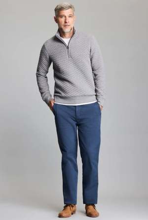 This effortlessly versatile layering piece is crafted from a lightweight cotton blend. It features a beautiful quilted fabric, rib on the cuffs and waist, and an antique brass zipper with our signature heirloom ribbon stripe embossed on the pull. Color: Medium Grey Fabrication: Cotton Blend Fit Notes: True to size