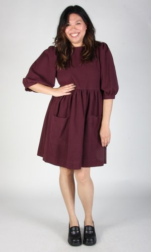 The Flowerpiercer Dress by Birds of North America is a relaxed fit dress made of thick, textured 100% cotton. It features in-seam skirt pockets and full sleeves that gather into a cuff. The dress pops on over the head and closes with a button and loop at the back neck. Sizing Notes: This dress has a very relaxed silhouette; for a fit similar to what you see on the models, please consult the size chart for fit measurements or see the exact garment measurements below. Hilary is 5'7" and is wearing L. Bust/hip, shoulder-to-hem-length (in brackets), then shoulder-to-shoulder: XS - 36 / 68 (36) 14.5 S - 38 / 70 (36.5) 14.5 M - 40 / 72 (37) 15 L - 42 / 74 (37) 15 XL - 45 / 77 (38) 16 2X - 48 / 80 (38) 16.5 3X - 52 / 84 (38.5) 17 The sleeve measures 18"(XS)-19(3X)" from shoulder to cuff. Wash cold delicate, hang to dry. Made in Canada.