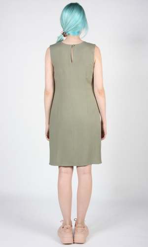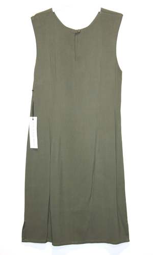 Special Notes: This item is part of our Studio Sale event and is lightly damaged. There is a snag in the fabric on the front left side of the dress. This seasons Kestrel dress is a reinvention of our Kestrel from SS18, but done a bit shorter. It has short slits on each side at the hem, closes with a keyhole opening with button and loop at the back, and is fully lined. This style is also available in Navy and Khaki. Shoulder to hem is 37". Shell: 100% Viscose Lining: 100% Viscose Care: A cold wash and hanging to dry will shrink the dress 8% in length, and negligibly in width. Dry clean for no shrinkage. Made in Canada.