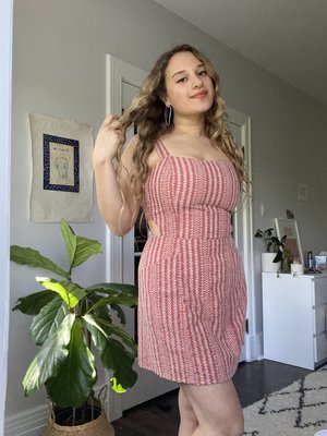 The Bluebird dress from Birds of North America is back, now in a beautiful eyelet fabric. This dress is a quintessential 'fun-in-the-sun' look, featuring cutouts at the sides and back, and an adorable three-button closure that is simply dreamy. This dress wouldn't be complete without pockets that make it functional for everyday wear. The Bluebird dress ideal for picnics, frolicking in fields, or just looking amazing as you go around town! Sizing Notes: Birds of North America's styles tend to fit true-to-size, but are quite tailored. This style is an ONLINE EXCLUSIVE Shell is 75% Polyester and 25% Cotton Lining is 100% Cotton Fabric does not have stretch to it Shoulder to hem is 34" Made in Montreal Also available in Sage When you shop at Victoire, you are supporting independent designers and Canada's garment industry. This dress is designed by Hayley Gibson and proudly manufactured in Montreal. Hayley has been making and designing clothes for over ten years, and it's because of customers like you that her label can thrive!