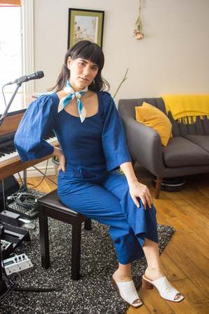 The Dickcissel jumpsuit from Birds of North America is a delightfully modern jumpsuit that features the classic tailoring inherent to the brand. This piece has a cropped wide leg, and full sleeve that beautifully contrast the fitted bodice of this piece. The rich blue colour is the cherry on top of a jumpsuit you'll pull out of your closet over and over! Sizing Notes: Birds of North America's clothing tends to fit true to size. Yolande is wearing a size 4 Inseam is 25" Content: 100% Cotton Fabric does not stretch Hand wash cold, hang to dry. Made in Montreal Also available in Shadow Plum Styled with the Penny Lebo Silk Scarf When you shop at Victoire, you are supporting independent designers and Canada's garment industry. This dress is designed by Hayley Gibson and proudly manufactured in Montreal. Hayley has been making and designing clothes for over ten years, and it's because of customers like you that her label can thrive!