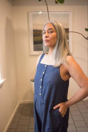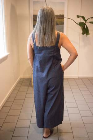 The Firecrest Jumpsuit by Birds of North America is an easy step-in style jumpsuit with pockets and a front button closure. It is made of a very soft, lightweight OEKO-TEX certified cotton denim. Sizing Notes: The Firecrest has a relaxed silhouette. To achieve a look similar to that of the models, we recommend following the size chart at the end of the photos or refer to the garment measurements below. Marisa is wearing size S. Hayley is 5'7" and is wearing size XS. Ruby is 5'10" and is wearing size L. The finished measurements of the actual jumpsuit in the bust/hip, in inches, are: XS - 35 / 46 S - 37 / 48 M - 39 / 50 L - 42 / 53 XL - 45 / 56 2X - 48 / 59 3X - 51 / 62 Shoulder to hem: 48" (XS) to 51" (3X) Inseam: 21"22" 100% Cotton (OEKO-TEX certified) Care: Wash cold on delicate, hang to dry (fabric has been pre-washed). Made in Canada. Also available in Medium Wash.