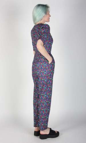 This Brambling jumpsuit was developed from one of Birds of North Americas most popular jumpsuit cuts, Auk, and has the same amazing fit, but with a lovely elbow-length sleeve for fall. It closes with a back invisible zipper and has generous front pockets. Nirmala is 5'2" and wears our size 10, and Hayley is 5'7" and is wearing our size 6. Brambling is made of 100% cotton, and can be hand or machine washed on a cold delicate cycle and hung to dry. The inseam measures 28" (size 2) to 29" (size 18). Everything at Birds of North America is vegan and has been made ethically in Canada since the brand began in 2007. We have a strong focus on sustainability and strive to create high-quality garments that last a long time. Special notes: This item is part of our Studio Sale event and is a sample, with no damage noted.