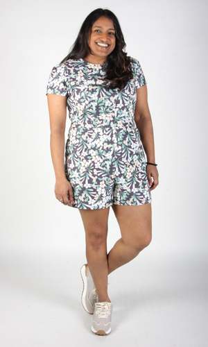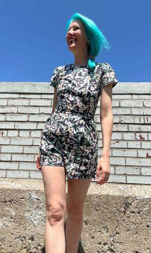 Teeter Bob is back! This tailored cotton romper has become a staple of our summer style lineup, with its flattering cut, capped sleeves and generous pockets! Teeter Bob is made of 100% cotton, and it closes with an invisible zipper down the back, and the inseam measures 3.5". This style is also available in Cat Dreams, Tendril Traces and Loons! Mila is 55 and wears our size 14. You can see our size chart here. You can hand or machine wash this romper on a cold, delicate cycle, and hang it to dry. Made in Canada.