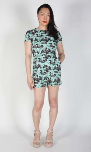 Teeter Bob is back! This tailored cotton romper has become a staple of our summer style lineup, with its flattering cut, capped sleeves and generous pockets! Teeter Bob is made of 100% cotton, and it closes with an invisible zipper down the back, and the inseam measures 3.5". This style is also available in Cat Dreams, Tendril Traces and Honeysuckle! Hannah is 5'9" and wears our size 10. You can see our size chart here. You can hand or machine wash this romper on a cold, delicate cycle, and hang it to dry. Made in Canada. Google product category 5250