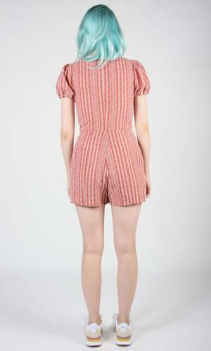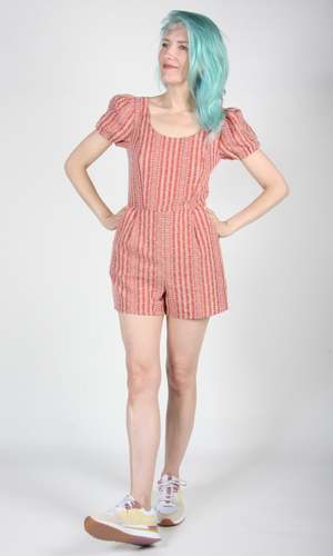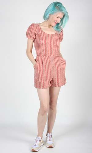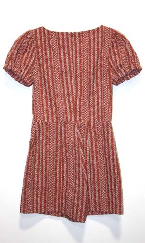 This is a previously enjoyed Birds piece. Bufflehead is a tailored romper inspired by our Akohekohe from last season. It has gathered sleeves and front pockets, and it closes with a back invisible zipper. Inseam is 3.5". Content: 75% Polyester, 25% Cotton Special Notes: Excellent condition! No damage or flaws noted!