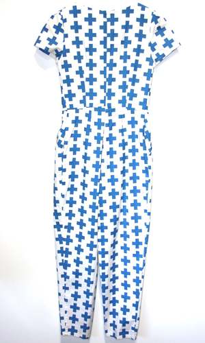 Gyrfalcon is a fitted, flattering jumpsuit with front pockets, a capped sleeve, and a back invisible zipper closure. Special Notes: There are a few small stains on the garment, but otherwise it is in good condition! Inseam: 28" Content: 100% cotton Care: Hand wash cold, hang to dry. Made in Canada.
