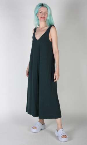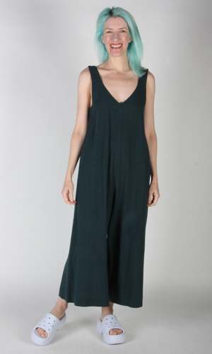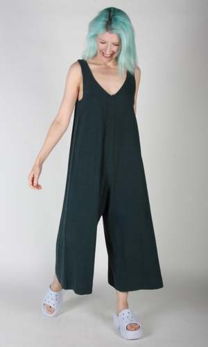 The Tawny Pipit jumpsuit by Birds of North America is based on the popular Bobwhite cut they have done in past seasons! This new incarnation has the same deep V front and back neck, and flowy cut, but the strap is a bit wider! It is made of a soft rayon/linen blend, and has a step-in neckline. Sizing Notes: This jumpsuit fits true to size and is meant to fall loosely past the hips. Hayley is 5'7" and wearing size S Shoulder to Hem (Inches): 51(XS) - 53(3X). 75% Rayon, and 25% Linen Wash cold delicate, hang to dry Made in Canada Also available in Black, Golden Moss, Lilac, and Red.