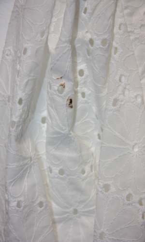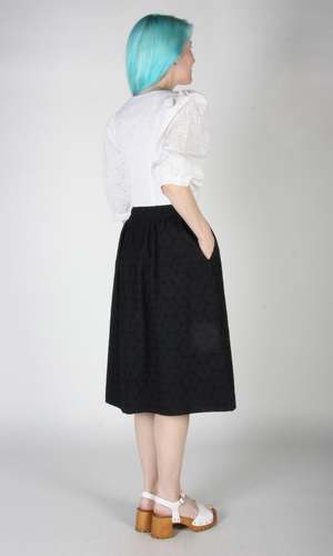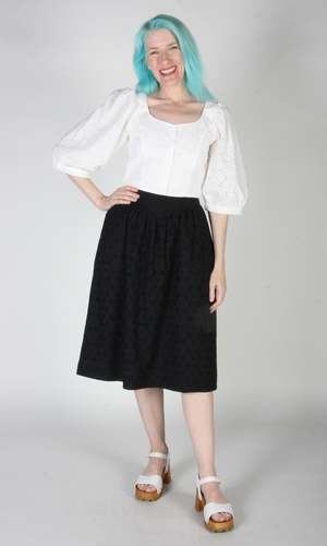 Special Notes: This item is part of our Studio Sale event and is lightly damaged. There are some stains near the top of the left sleeve. It is possible they are scorch marks, so they may not come out, but they are fairly well hidden by the texture of the fabric. Esmerillon is a scoop-neck, button-front top with a full sleeve that gathers into a cuff. This beautiful 100% cotton eyelet is lined in matching OEKO-Tex certified cotton voile, and is available in White, Ube, and Black. Esmerillon measures 16.5" (XS) to 18" (3X) in length. Waist/Bust finished measurements of each size, in inches, are: XS - 30/35 S - 32/37 M - 34/39 L - 36/41 XL - 38/43 2X - 40/45 3X - 42/48 Everything at Birds of North America is vegan and has been made ethically in Canada since 2007. We have a strong focus on sustainability, and strive to create high-quality garments that last a long time. Made in Canada.
