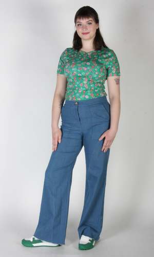 Dipper is a classic tee made of soft cotton jersey that contains 95% cotton and 5% spandex. This lovely print has a bright green background with pink and white straw flowers! Dipper has a ton of stretch and fits true to our size chart. Measurements of the actual top - body circumference, followed by shoulder-to-hem length, and shoulder-to-shoulder at the back - in inches, are as follows: XS - 32 / 24 / 15, S - 33.5 / 24.5 / 15, M - 35/ 24.5 / 15.25, L - 38 / 25 / 16, XL - 41 / 25 / 16.5, 2X - 44 / 26 / 17, 3X - 48 / 26 / 18. This top can be hand or machine washed on a cold, gentle cycle and laid flat to dry.