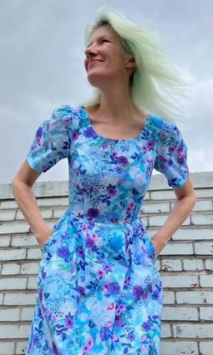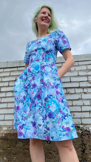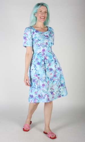 PLEASE NOTE: This style is on pre-order only right now. We're expecting it to arrive in the third week of April, 2024. Winter Chippy is back in gorgeous new cotton prints! It has our classic fit and flare cut, with pleats at the waist, and front skirt pockets, and a back invisible zipper closure. It is also available in Navy Village Toile, Brick Village Toile and Red Patches. This sweet print is a beautiful 100% cotton deadstock, and the skirt is lined in soft satin that is 96% polyester and 4% spandex. Winter Chippy can be hand or machine washed on a cold, delicate cycle and hung to dry. Hayley is 5'7" and wears our size 6. Winter Chippy measures 39"(2) to 42"(20) from shoulder to hem - you can see our size chart here. Everything at Birds of North America is vegan and has been made ethically in Canada since we began in 2007. We have a strong focus on sustainability, and strive to create high-quality garments that last a long time. You can browse vintage Birds styles that we've gathered back as part of our buyback program in our ReNesting section!