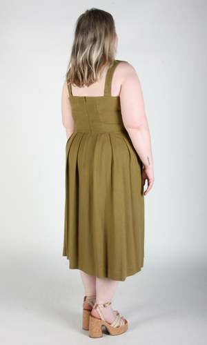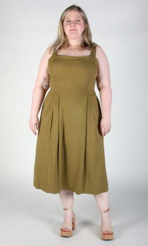 Thornbill is a perfectly simple, strappy summer dress, made of soft and breathable rayon/linen noil. This cut has a lovely fit and flare shape, but the fabric has lots of give, so its very comfortable to wear! It has a curved, fold-over flap at the bust as well as pockets in the skirt. The fabric is 75% rayon and 25% linen, and it closes with an invisible zipper at the back. Thornbill can be hand or machine washed on a cold, delicate cycle and hung to dry. It is also available in Black, Red and Lilac! Kristina is 5'3" and wears our size 16. Thornbill measures 44"(2) to 46.5"(20) from shoulder to hem - you can see our size chart here. Everything at Birds of North America is vegan and has been made ethically in Canada since we began in 2007. We have a strong focus on sustainability, and strive to create high-quality garments that last a long time. You can browse vintage Birds styles that we've gathered back as part of our buyback program in our ReNesting section!