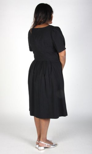 Birds of North America's Crag Martin Dress is a classic fit and flare style -- a signature and beloved cut of the brand! The Crag Martin features pleats at the waist, functional front skirt pockets and an invisible back zipper which gives this dress that perfectly tailored fit. This is a timeless cut in a beautiful heavy weight organic sand-washed cotton that has a soft hand and a beautifully faded, vintage quality. This dress is a perfect catch-all in terms of where you can wear it. Easily accessorize this dress to be more casual, dressy, or professional! Sizing Notes: This dress is fitted without stretch. We recommend your usual size or going one up for slightly more room. Epi is wearing size 20 Mila is 5'5" and is wearing size 14 Finished measurements of the actual dress in the bust/waist/hip, followed by shoulder-to-hem-length (in brackets), in inches, are as follows: 2 - 34 / 26 / 59 (40.5) 4 - 35 / 27 / 60 (41) 6 - 36 / 28 / 61 (41.5) 8 - 37 / 29 / 63 (42) 10 - 39 / 31 / 65 (42.5) 12 - 41 / 33 / 67 (43) 14 - 43 / 35 / 69 (43.5) 16 - 45 / 37 / 71 (44) 18 - 47 / 39 / 73 (44.5) 20 - 51 / 43 / 77 (44.5) Shell: 100% Organic Cotton Skirt Lining: 97% Polyester, 3% Spandex Fabric has no stretch to it Wash cold delicate, Hang to dry Also available in Navy, Iron, and Rosewood