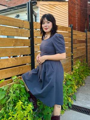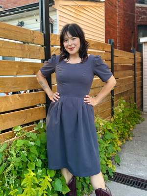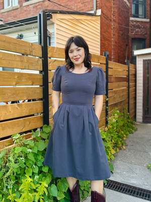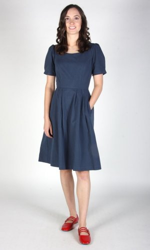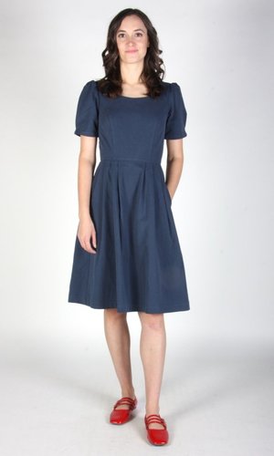 Birds of North America's Crag Martin Dress is a classic fit and flare style -- a signature and beloved cut of the brand! The Crag Martin features pleats at the waist, functional front skirt pockets and an invisible back zipper which gives this dress that perfectly tailored fit. This is a timeless cut in a beautiful heavy weight organic sand-washed cotton that has a soft hand and a beautifully faded, vintage quality. This dress is a perfect catch-all in terms of where you can wear it. Easily accessorize this dress to be more casual, dressy, or professional! Sizing Notes: This dress is fitted without stretch. We recommend your usual size or going one up for slightly more room. Jill is 5'7" and is wearing size 2 Shell: 100% Organic Cotton Skirt Lining: 97% Polyester, 3% Spandex Fabric has no stretch to it Wash cold delicate, Hang to dry Also available in Black, Iron, and Rosewood