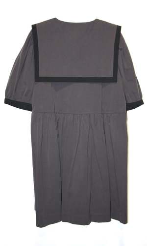 This nautically inspired frock is made of a heavy-weight, organic sand-washed cotton. It has a soft hand and a beautifully faded, vintage quality that works well in this style. Fulvetta has a full skirt with generous in-seam pockets, a V-neck with button-front placket, full sleeves that gather into a contrast cuff, and an oversize sailor collar with black edging. This fabric does not have any stretch and will shrink very little in the wash. The dress can be hand or machine washed on a cold, delicate cycle and hung to dry. Fulvetta has a very relaxed fit, but fits true to the Birds of North America size chart. Mila is 5'5" and wears a size L. Finished measurements of the actual dress bust/hip followed by shoulder-to-hem length (in brackets), in inches, are as follows: XS - 38/70 (37) S - 40/72 (37) M - 42/74 (37.5) L - 44/76 (37.5) XL - 46/78 (38) 2X - 48/80 (38) 3X - 51/84 (39) Special notes: This item is part of the Studio Sale and is lightly damaged. The shoulders both have a faint, sun-faded line on the top of the collar. No other damage noted. Everything at Birds of North America is vegan and has been made ethically in Canada since 2007. The brand has a strong focus on sustainability and strives to create high-quality garments that last a long time.