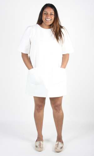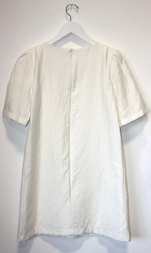 Special Notes: Very good condition! Just has a very small, very faint mark on the pocket! Bishop has become a popular cut at Birds - a relaxed fit, T-shirt style dress with sleeves. This seasons version is done in a beautiful cotton, with a crinkly texture, and is fully lined in cotton voile. It has front patch pockets and closes with a back invisible zipper. Shoulder to hem is 34". Content: 95% Cotton, 5% Nylon Hand wash cold, hang to dry.