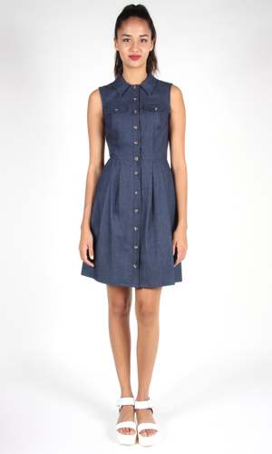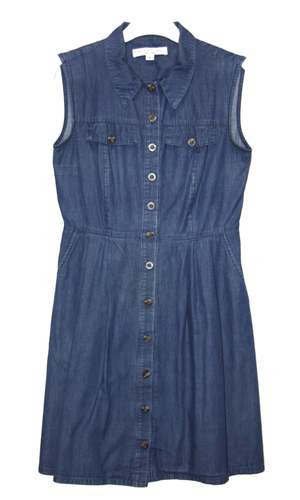 Bananaquit is from the SS16 collectsion. This dress is a classic, collared shirt-dress with a front button closure and pockets in the skirt. The skirt is lined in cotton voile. Made from 100% cotton. Condition: Excellent. There is allover fading on the denim due to wear, giving it a lovely vintage look. No damage noted.