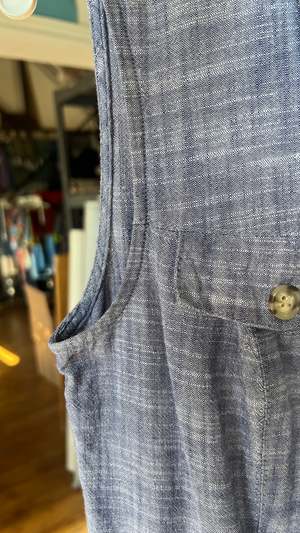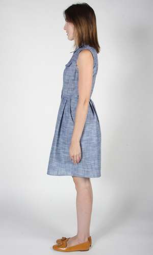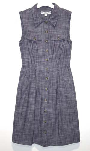 Vanneau is a classic shirt-dress with a button front placket, a collar, and pockets in the skirt. The top is faced, and the bottom is lined with cotton voile. Special Notes: This dress has very faint yellowing in the underarms, but is otherwise in excellent condition!