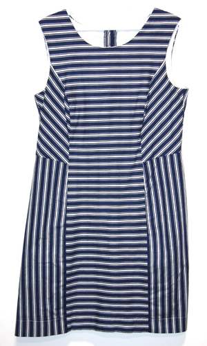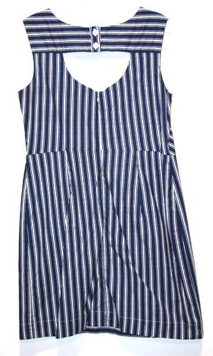 This previously enjoyed Whydah Dress from the SS17 collectsion features a slim fit and a peek-a-boo opening at the back. It is fully lined in cotton voile and closes with a back invisible zipper and a two-button tab. Good condition, with some slight yellowing around the neck and one small spot on the skirt front. 100% polyester with cotton voile lining. Made in Canada.