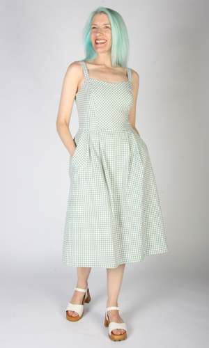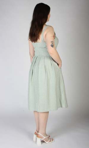 Sparrow Hawk is a tailored dress made of medium-weight, organic cotton gingham. It has playful directional gingham details on the top, as well as the front pockets. The neckline is faced, and it closes with a back invisible zipper. Sparrow Hawk is also available in blue. This dress can be hand or machine washed on a cold, delicate cycle and hung to dry. Ruby is 5'10" and wears size 12, and Hayley is 5'7" and wears size 6. Sparrow Hawk measures 44" (size 2) to 47" (size 20) from shoulder to hem. This style fits a bit on the larger side due to the give of the soft fabric. If you are between sizes we recommend taking the smaller size. Finished measurements of the actual dress in the bust/waist/hip, in inches, are as follows: 2 - 34 / 28 / 58 4 - 35 / 29 / 59 6 - 36 / 30 / 60 8 - 37 / 31 / 61 10 - 39 / 33 / 63 12 - 41 / 35 / 65 14 - 43 / 37 / 67 16 - 45 / 39 / 69 18 - 48 / 42 / 72 20 - 51 / 45 / 75 Everything at Birds of North America is vegan and has been made ethically in Canada since 2007. The brand has a strong focus on sustainability and strives to create high-quality garments that last a long time.