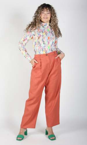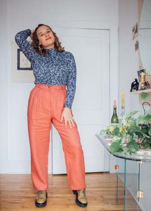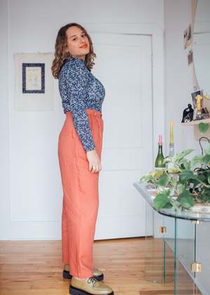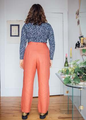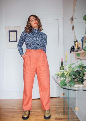 Birds of North America's Cinclodes Pants are back! These vintage-inspired pleated linen pants have front pockets, belt loops and a classic fly-and-button front. They're made of 100% linen, which will get softer and more beautiful every time you wash it for years to come! This was one of our best selling pants last summer and Birds haven't changed much about it except for adding about 1" more length to the leg. You'll love the Cinclodes' loose fit and neutral colour for both work and play! Sizing Notes: Birds of North America's styles tend to fit true-to-size, although they are quite tailored to the body. If you like a bit more room, consider going a size up. Epi is wearing a Size 18, Rachel is wearing a Size 10 Inseam: 30" 100% Linen The linen is an OEKO-TEX certified fabric, which means that every component of the material has been tested and found to be free of harmful substances. Fabric does not have stretch to it Wash cold, hang to dry Made in Canada Also available in Black, Spruce, Shale and Hyacinth Styled with the Birds of North America Nunchie Top When you shop at Victoire, you are supporting independent designers and Canada's garment industry. This garment is designed by Hayley Gibson and proudly manufactured in Montreal. Hayley has been making and designing clothes since 2007, and it's because of customers like you that her label can thrive!