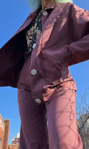 Tystie is a jacket with white contrast topstitching, patch pockets and a front button closure. It is made of a thick, but soft, 100% cotton Japanese twill. This jacket has an oversize fit and looks fabulous worn both a bit larger or a bit smaller, depending on your preference! If you'd like it to fit the way it does on our models, we recommend these size equivalents: Birds 2-6, or XS-S, we recommend the XS Birds 6-10, or S-M, we recommend the S Birds 10-14, or M-L, we recommend the M Birds 14-18, or XL-XXL, we recommend the L You can see our size chart here for reference! Liz is 5'9" and wears our size S in the photos. Tystie measures about 28" from shoulder to hem, and is also available in Black and Garage Blue and can be paired with Bonxie pant to make a set! This jacket can be hand or machine washed on a cold delicate cycle and hung to dry. Everything at Birds of North America is vegan and has been made ethically in Canada since we began in 2007. We have a strong focus on sustainability, and strive to create high-quality garments that last a long time. You can browse vintage Birds styles that we've gathered back as part of our buyback program in our ReNesting section! Google product category 5250