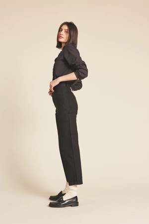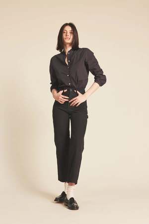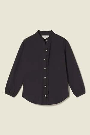 description: A classic button-down shirt with added feminine details to create this shirt style. The standup collar and centre front button placket have self-fabric ruffle details. Long sleeves gather into narrow cuffs with button closures. fabric: 100% Cotton Breathable and meant for summer time light layers Machine wash cold, separately. Tumble dry low, medium iron as needed. All Trovata fabrics are handmade in California measurements: Skimming or loose depending on preference. Model is 5'7" and wearing a size S.