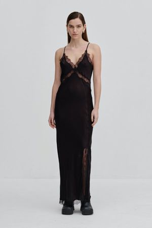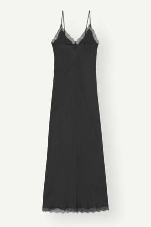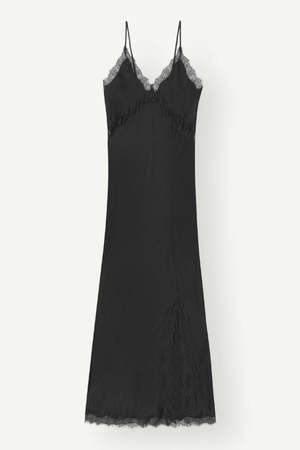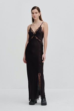 Meet The Jonathan Slip Dress in Black from Birgitte Herskind. Made of fabric with the FSC certificate, this design features black lace trims, adjustable shoulder strap and slit at the hem. DETAILS: - Maxi Length Dress - 50% FSC Viscose, 50% Rayon SIZE + FIT: - Fits True To Size
