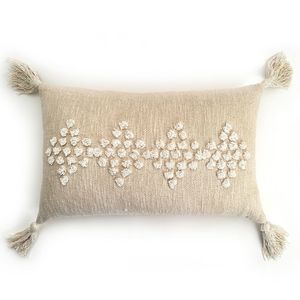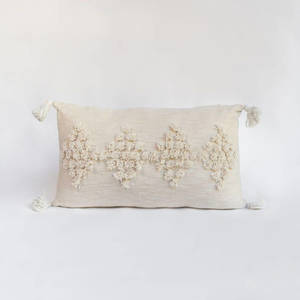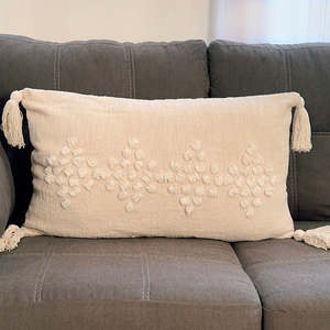 Maker: Bit of Meraki Beautifully playful yet playfully chic. A gorgeous weave and small tassels on each side are what make up this Viha pillow. Each pillow is handmade by artisans so there might be natural variations making each one truly unique. These cushions can be paired with our range of bigger throw pillows or can just be used on their own. - Material: 100% Cotton - Size: 16 x 26inch - Comes vacuum packed with 17 x 27 inch cushion insert. - Since our products are handmade by artisans, there might be natural variations to each one of them and are not product flaws. Each handmade product is truly unique. - Made in India - Care Instructions: Spot Clean only - Every purchase helps artisans and donations to help fund clean water projects in developing countries