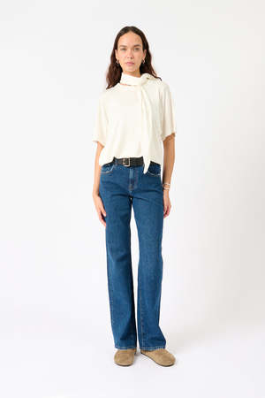 The Ludo Sheer Tee from Bite Studios features an adaptable scarf detail that elevates its loose, roomy silhouette. For a more understated style, the scarf can be separated, wrapped neatly, or draped loosely. Materials 90% lyocell, 10% cashmere Details - Lyocell-cashmere blend - High neck - Short sleeves - Oversized fit - Machine wash Fit - Fits true to size Made in Portugal.