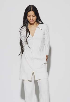 Elevate your layering game with the Lys Cardigan, a long-ribbed cardigan that adds an extra element of detail to any outfit. Part of the best-selling Lys set, this cardigan available in both black and white is crafted from a blend of organic and recycled cotton with polyester. Pair it with the matching Lys Trousers for a coordinated look or throw it over your favourite summer outfit for an extra layer of style. COMPOSITION 62% Organic Cotton 22% Polyester 16% Recycled Cotton SIZE & FIT Model is 5'10" and wears S ABOUT .BLACK TO GREY .blacktogrey designs and manufactures timeless garments from recycled clothes and sustainable fabrics. Not only that, .blacktogrey is also a movement supporting unconventional and innovative ideas to inspire the world to get involved in sustainable and circular economies by recycling old clothes and creating new garments that last a lifetime. The first step was working with universities to push the importance of sustainable clothing by educating the next generation, inspiring everyone to take action together. Side by side, we will create a collectsive power that will build a movement empowering climate change warriors and social justice activists.