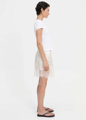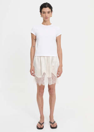 The Lily Skirt is an effortlessly refined essential, crafted from a soft, lightweight fabrication with a fluid drape and delicate lace hem. Designed to sit comfortably at the waist, it balances modern minimalism with subtle femininity. Pair it with the matching Lily Top. - Mini length - Elasticated waistband - Lace panel detailing at hem Model 1 height is 178cm/5'8" and wears a size S. Model 2 height is 177cm/5'9" and wears a size S. Fabric 1: 100% Acetate Fabric 2 (lace): 100% Nylon.